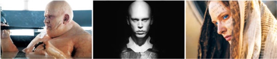 왼쪽부터 흉측한 빌런 블라디미르 하코넨(스텔란 스카스가드), 페이드 로타(오스틴 버틀러), 그리고 계시를 퍼뜨리는 폴의 어머니 제시카(레베카 페르구손). 워너브러더스코리아 제공◇영웅담이 아니다