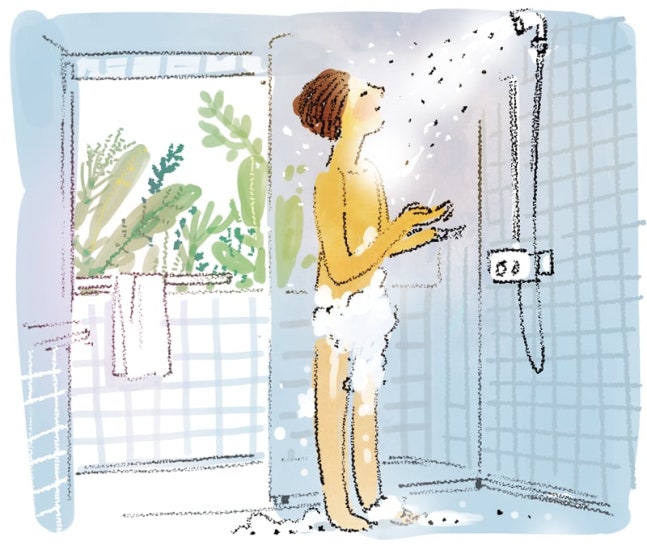 흔히 우리는 몸을 씻으면서도 마음은 회사 일이나 뉴스, 이런저런 근심 걱정을 할 때가 많습니다. 그러면 샤워는 그냥 행위의 한 가지, 해야 할 일이 되어 버립니다. 몸은 여기에서 샤워하지만 마음은 천지 사방으로 떠돌거나 스트레스 받는 일에 가 있을 수 있습니다.