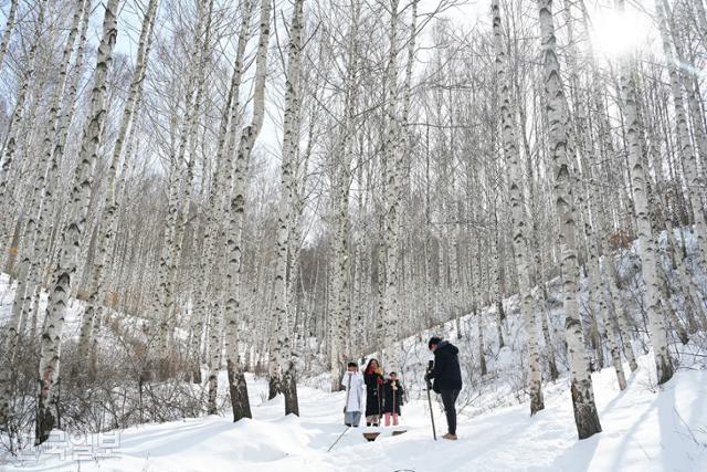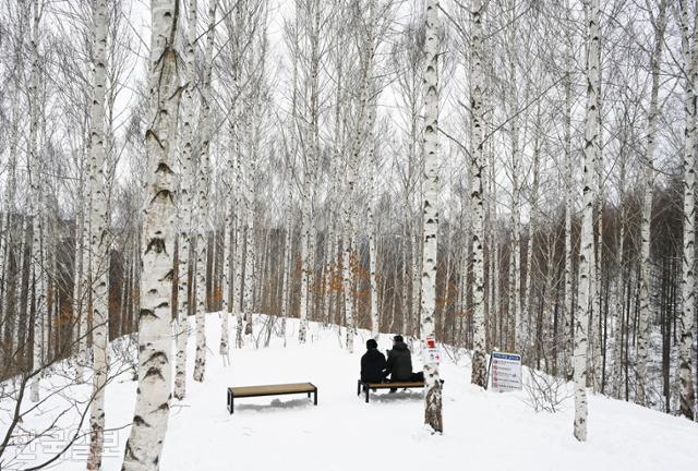 자작나무숲에는 7개 탐방로가 있는데 이번 겨울에는 눈이 많이 내려 ‘달맞이숲’으로 가는 단 하나의 탐방로만 운영되고 있다. 방문객이 가장 많은 ‘별바라기숲’으로 연결되는 탐방로는 모두 막혔다. 이 길을 걸을까, 저 길이 나을까 고민할 것 없이 오로지 한 길만 걸으면 된다.